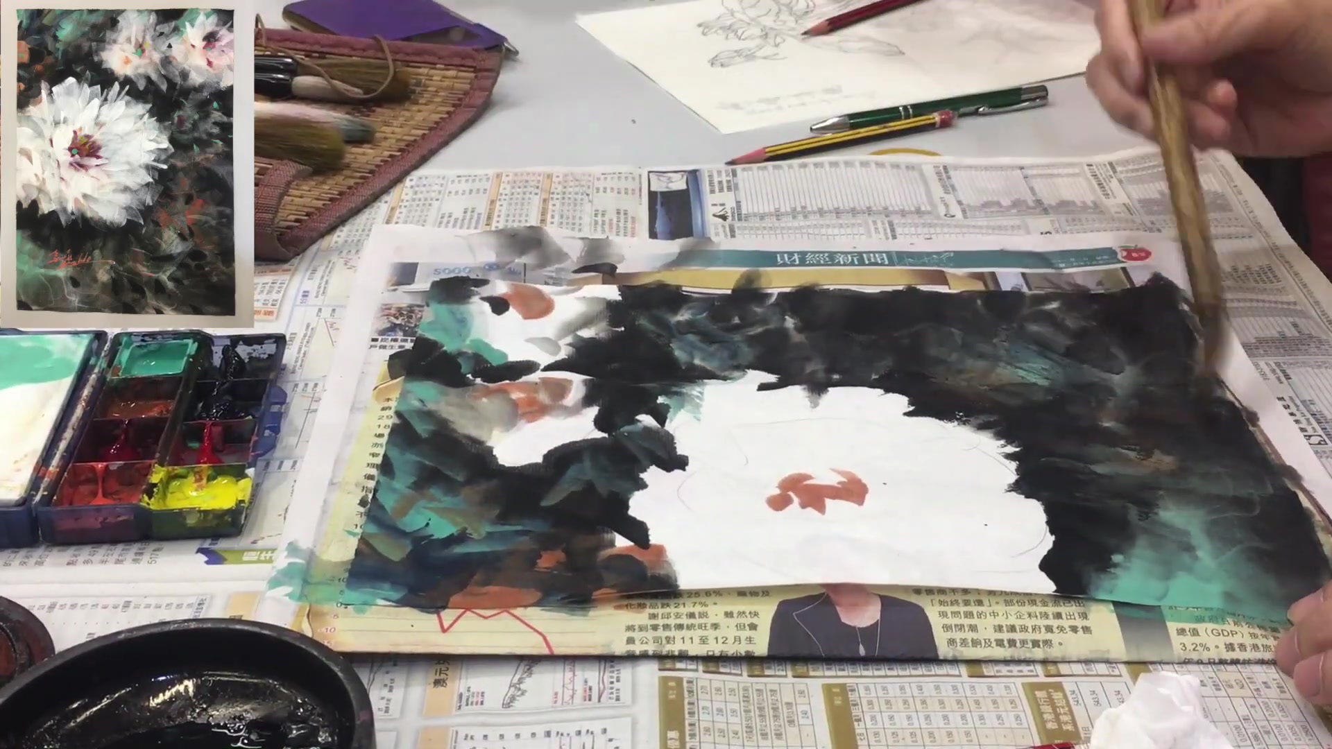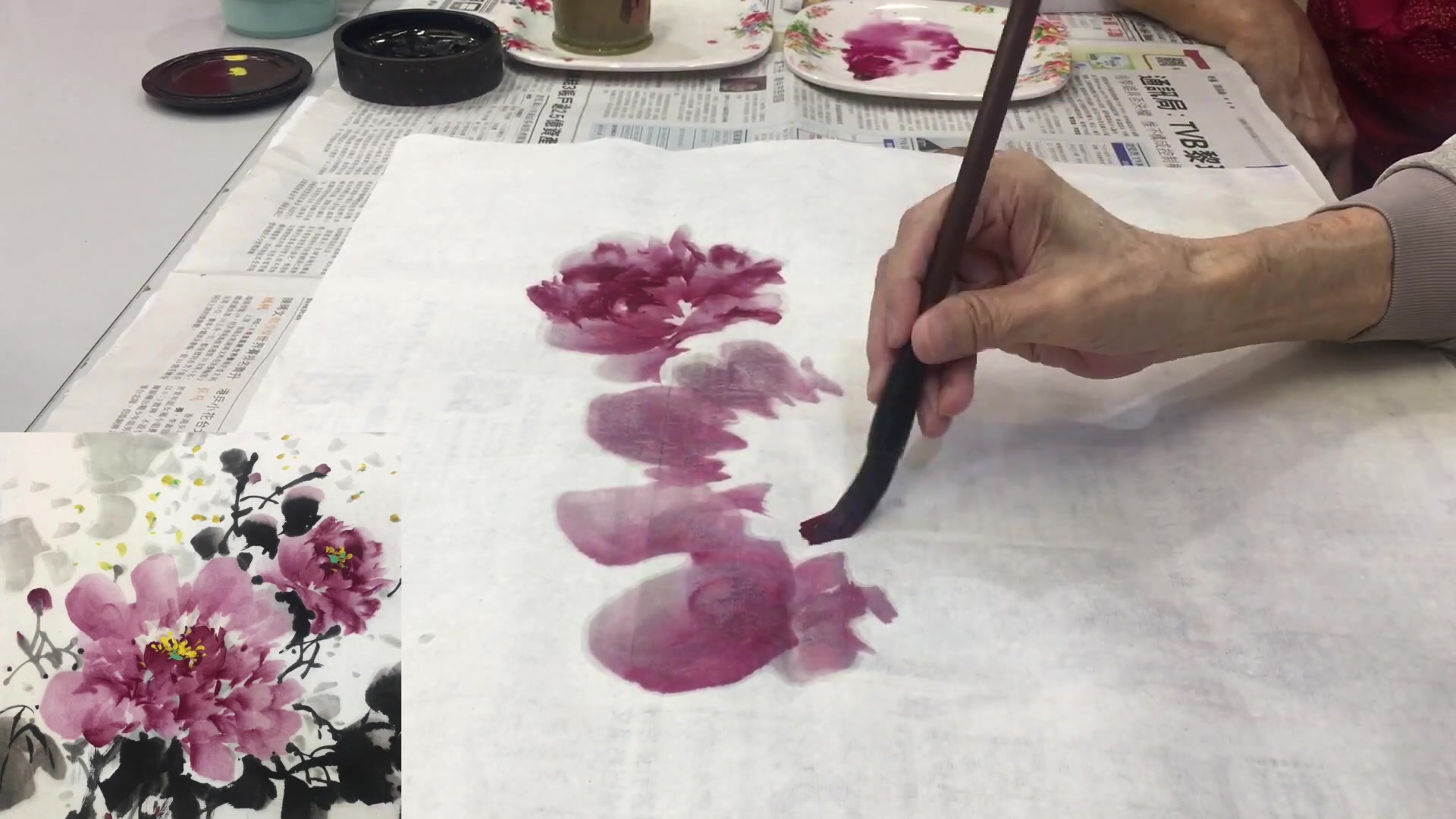 简介:专注于彩墨白牡丹的高级绘制技巧,视频深度解析墨色层次、水分控制与留白艺术,展示如何运用湿笔渲染与干笔勾勒相结合的手法,创造出既有墨韵又显白牡丹清丽之美的作品,为国画爱好者提供进阶指导。